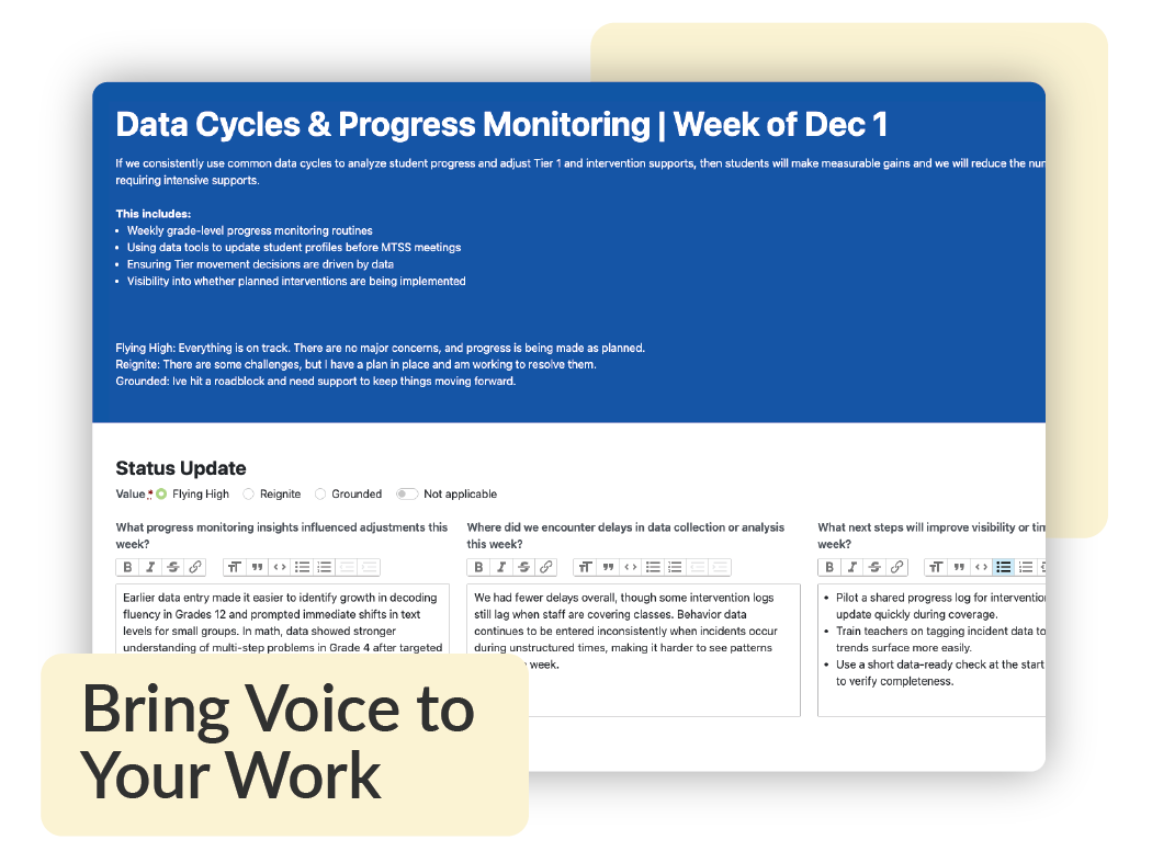 Give leaders and teams a single view of priorities, progress, and needs